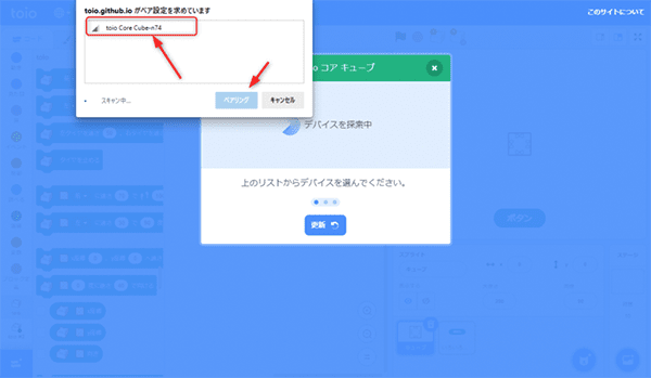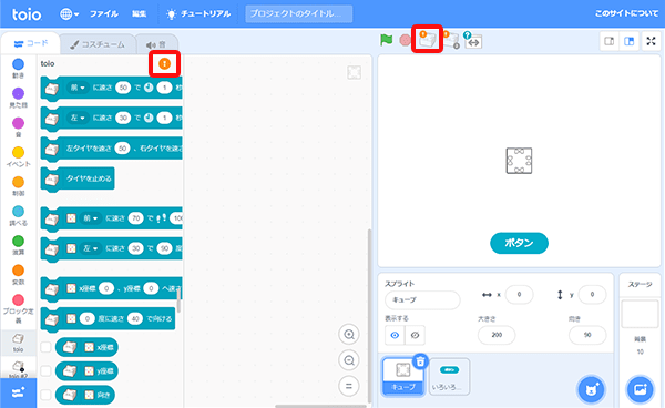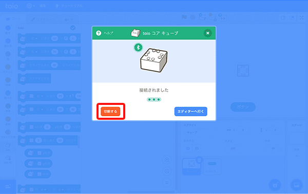 ※キューブは左のブロック内の「!」ボタンからも接続することができます。